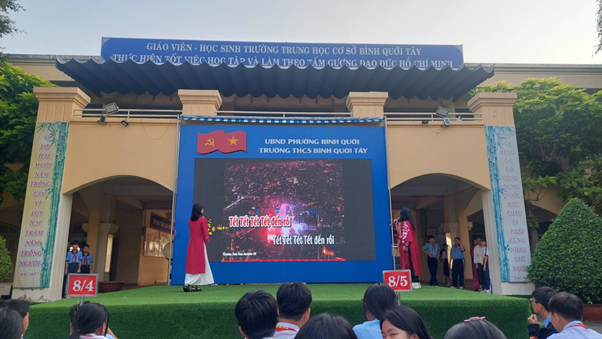 🎶 Mở đầu chương trình là tiết mục văn nghệ đặc sắc với ca khúc “Ngày Tết quê em” (Sáng tác: Từ Huy) do các bạn Băng Tâm, Phúc An và Yến Nhi trình bày. Tiết mục mang đến không khí xuân rộn ràng, tươi vui, góp phần lan tỏa sắc xuân đến toàn thể thầy cô và học sinh.